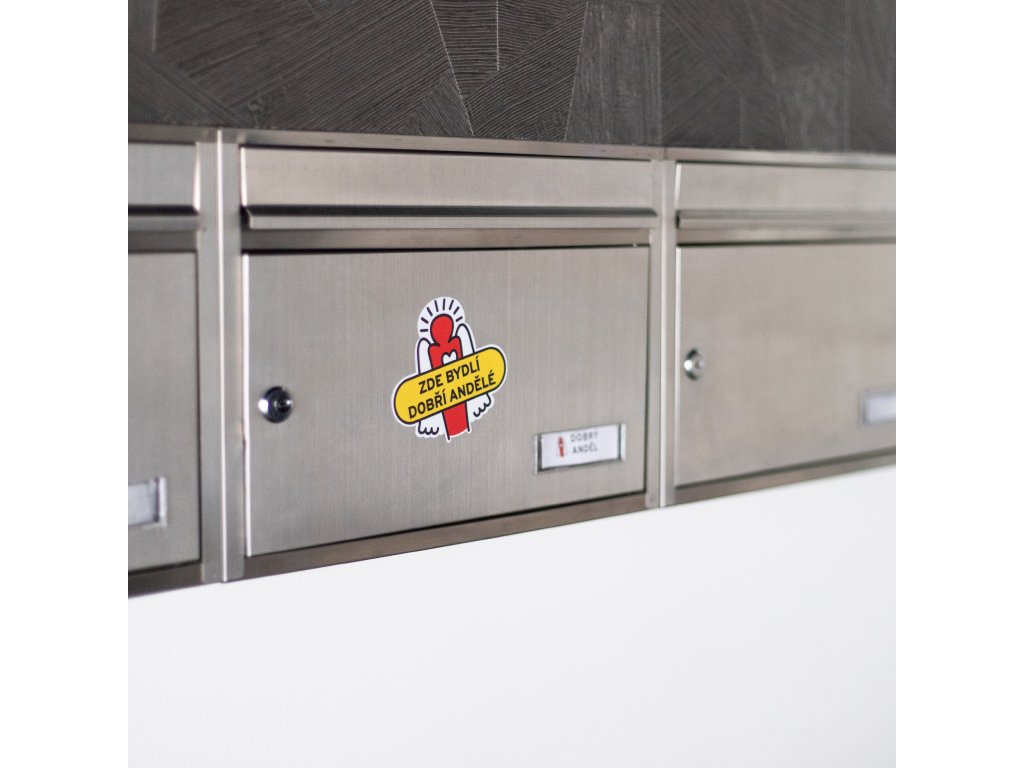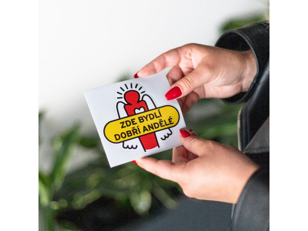 Na dveře, na okno, na poštovní schránku... jak je libo. Dejte vědět, že zde bydlí hrdí Dobří andělé!