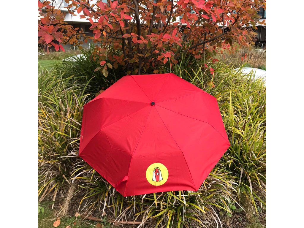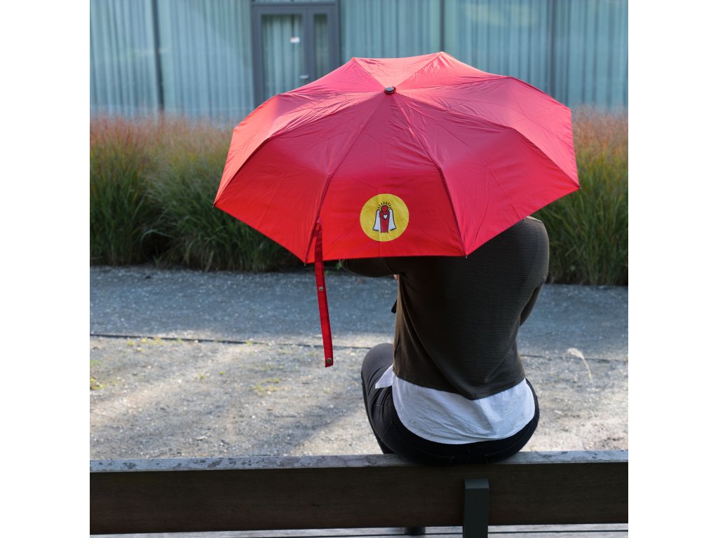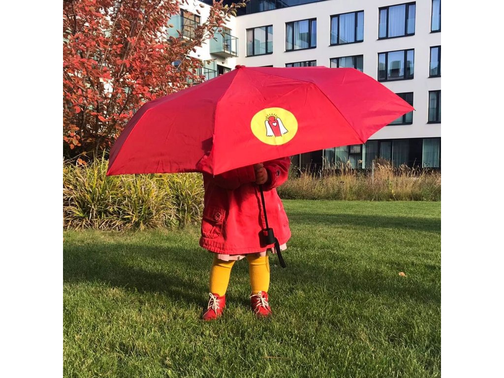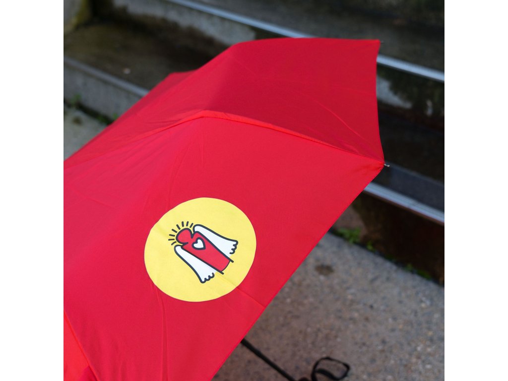 - vás ochrání svým "kloboukem" o průměru 91,5 cm, na němž se skví logo Dobrého anděla o průměru 11 cm,