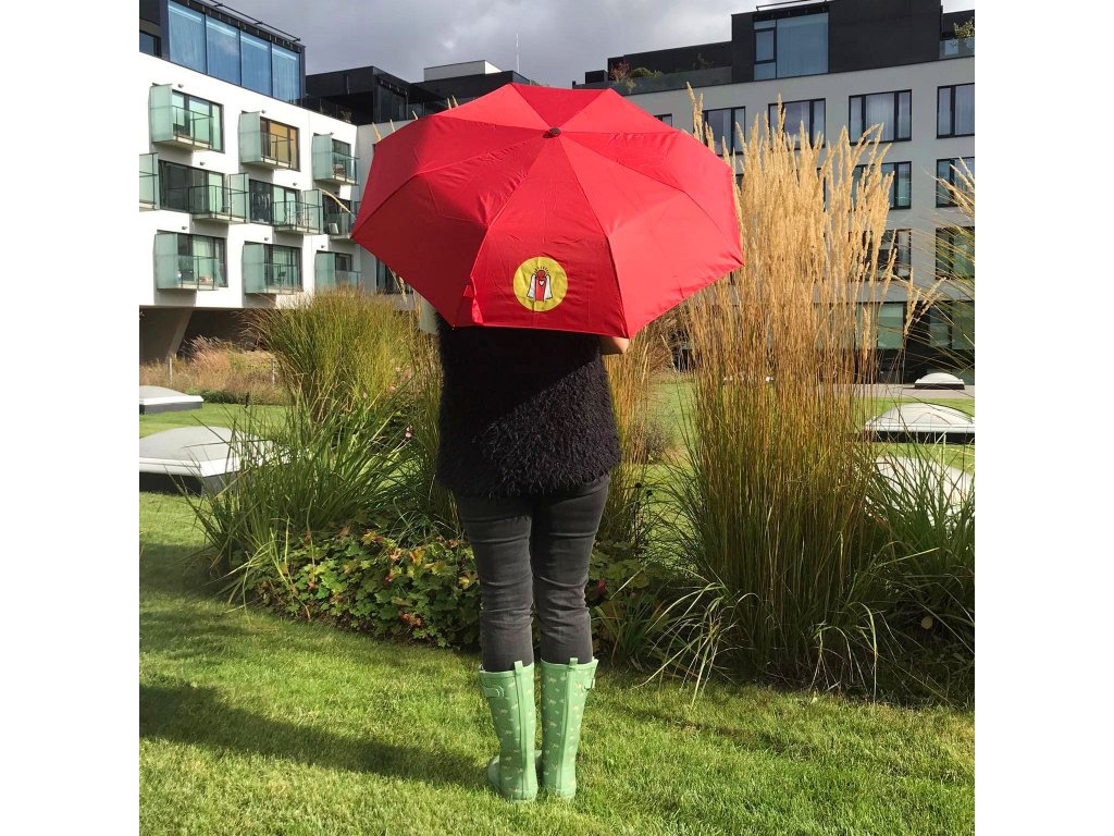 - je vyroben z polyesterového hedvábí, má pevnou kovovou konstrukci, žebra ze skelných vláken a pogumovanou rukojeť,